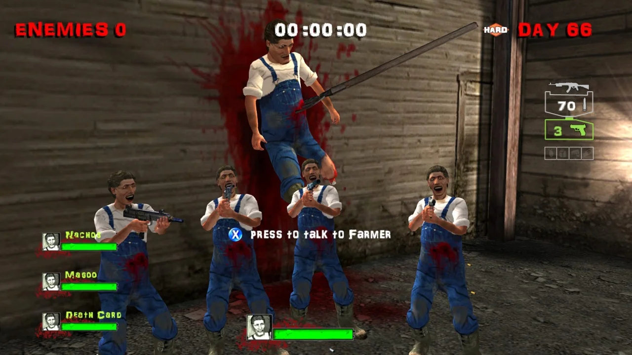 ==================================Blood And Bacon это мультиплеерный, кооперативный шутер от первого лица на выживание, который ставит игроков с тяжелыми пушками в путь из 100+ уровней безумия. Днем и ночью игроки сталкиваются с 35-ю типами врагов, а еще множеством боссов, например "Принцесса Толстая Кишка" или же минибоссы, которые встречаются каждые 10 уровней. Вы научитесь стрелять и бегать защищаясь от натиска свинных уродов. В мясорубке можно найти боеприпасы, энергетик, гранаты, ракеты и другие ускорители, которые можно получить путем переработки свиней. Более 15 часов геймплея и возможность сразиться с 500+ врагами за раз. "Blood and Bacon" вызывает больше волнений, чем отрубленная нога старого МакДональда!!!