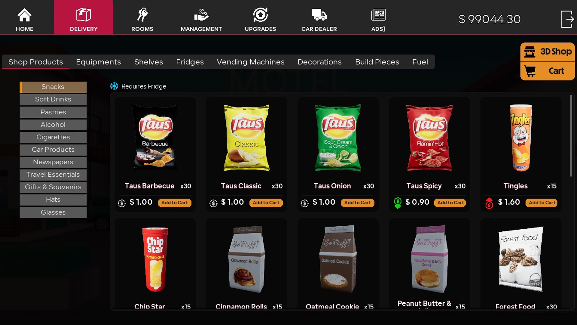 Закажите поставки продуктов/оборудования и всего, что вам нужно для работы вашего мотеля. Устанавливайте цены на продукцию магазина и аренду помещений. Дайте своим сотрудникам задания и убедитесь, что вы им платите.