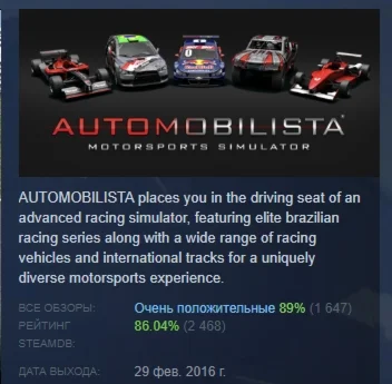 Разные » Automobilista АВТОДОСТАВКА STEAM GIFT РОССИЯ