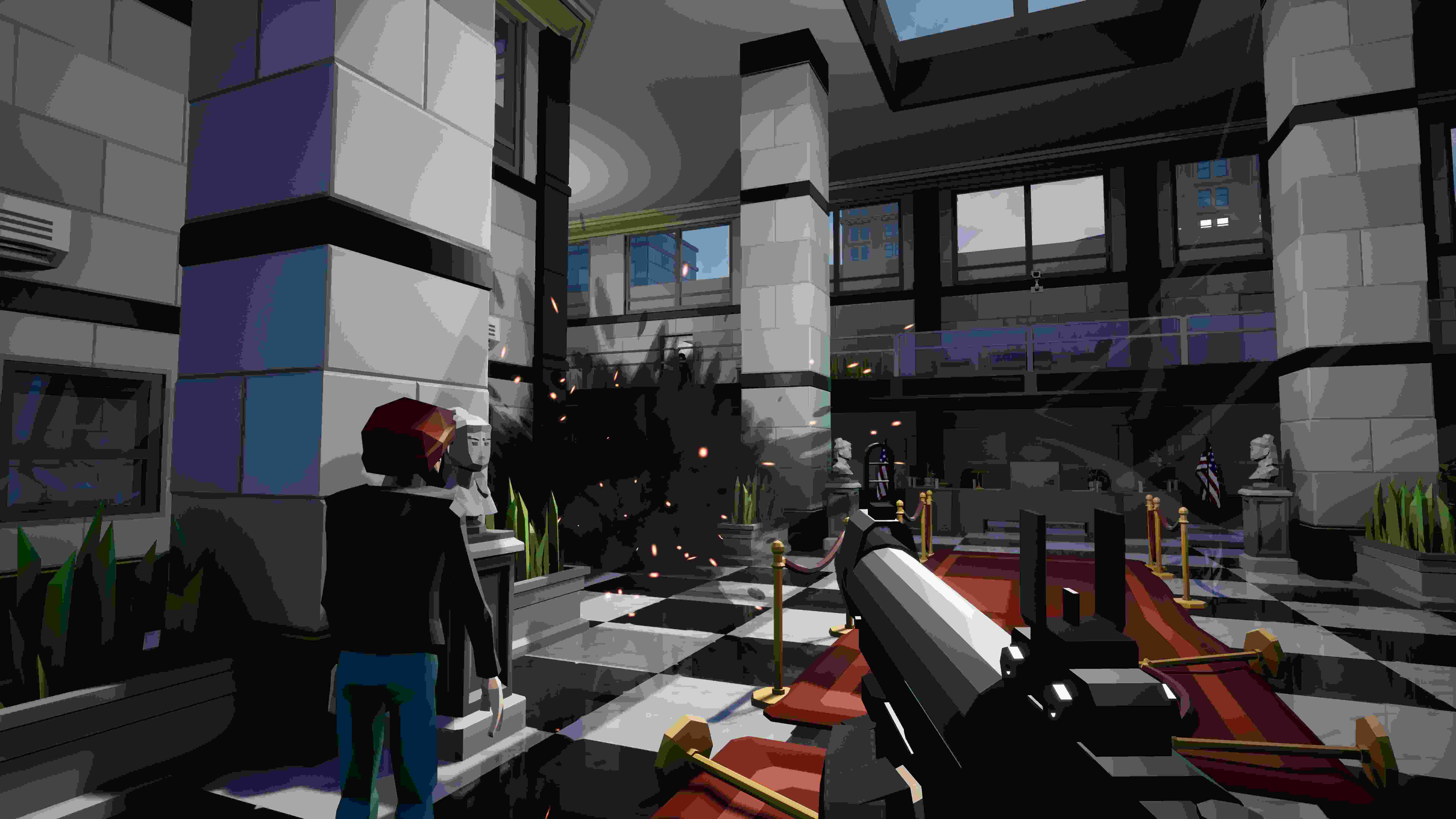 In this game, one robber team tries to steal money and other goods from a bank while trying not to get noticed by the cop team. The cops have a big advantage in fighting, so keeping a low profile and blending in with the crowd is critical for the robbers. Wait for the perfect moment to knock out one of the employees to use his clothes as a disguise while sneaking, drilling, bombing, or hacking your way to the loot!