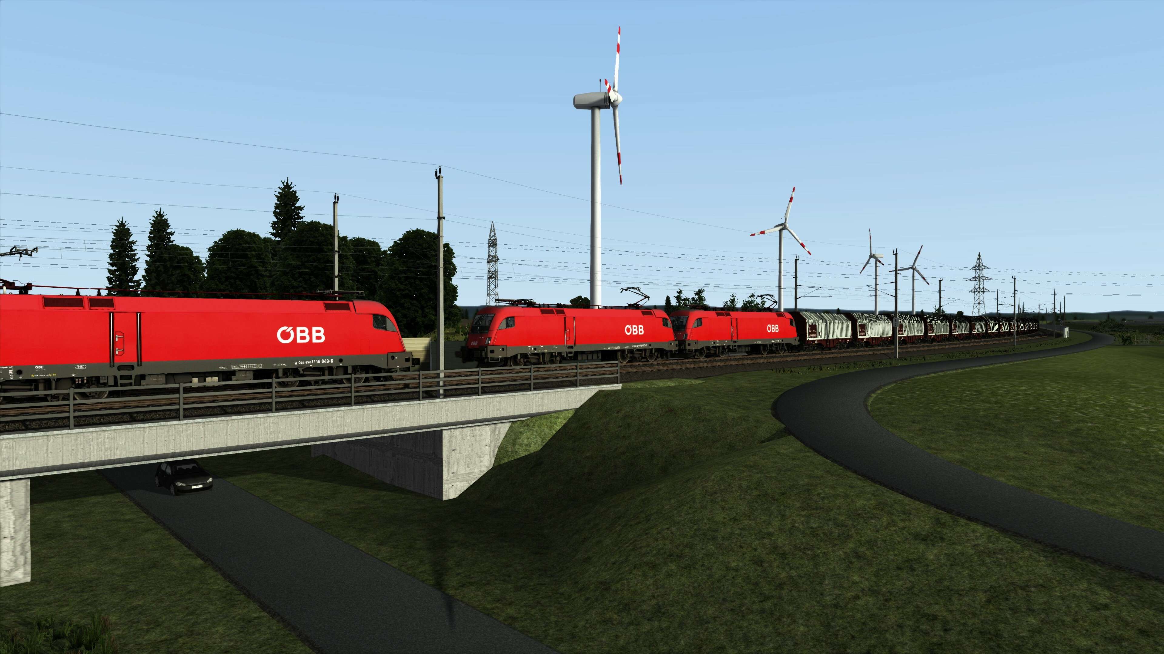 You can take in these views from the cab of the ÖBB 1116 ‘Taurus’. This is included with the route along with a selection of appropriate rolling stock. ÖBB Bmpz carriages for passenger duties and a variety of freight wagons including Snps, Shimmns and Habbins. The loco and rolling stock are used across the five included Career Scenarios.