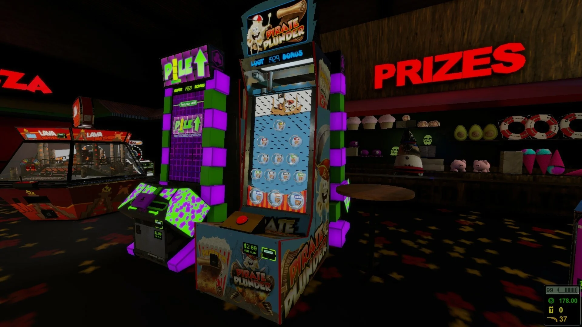 The Coin Game is a fun collection of ticket arcades that are all run by goofy robots on an little island full of things to do. The arcades include highly detailed machines with realistic physics that are inspired by modern arcade machines. There are ticket redemption areas to exchange your counted tickets for all kinds of fun prizes. Larry's Arcade has an in-house animatronic band called Teddy and the Ticket Eaters that would love to play you some tunes while you enjoy the arcade. Other additions to Islandville include, UFO Arcade that features modern space inspired arcade machines, Lazer Tag and an Indoor Go Kart Race Track. There is also a 90's inspired indoor mall with an arcade, food court, shops and a Cinema to watch movies from your hard drive. Make sure to watch out for the minions, they really love Teddy and his band and they also are pretty good at Lazer Tag. Run out of money? That's ok. You can work odd jobs around the island to get back on your feet. Got extra prizes? The island has a Pawn Shop that will buy your used prizes for cash so you can go blow it back at the arcade.