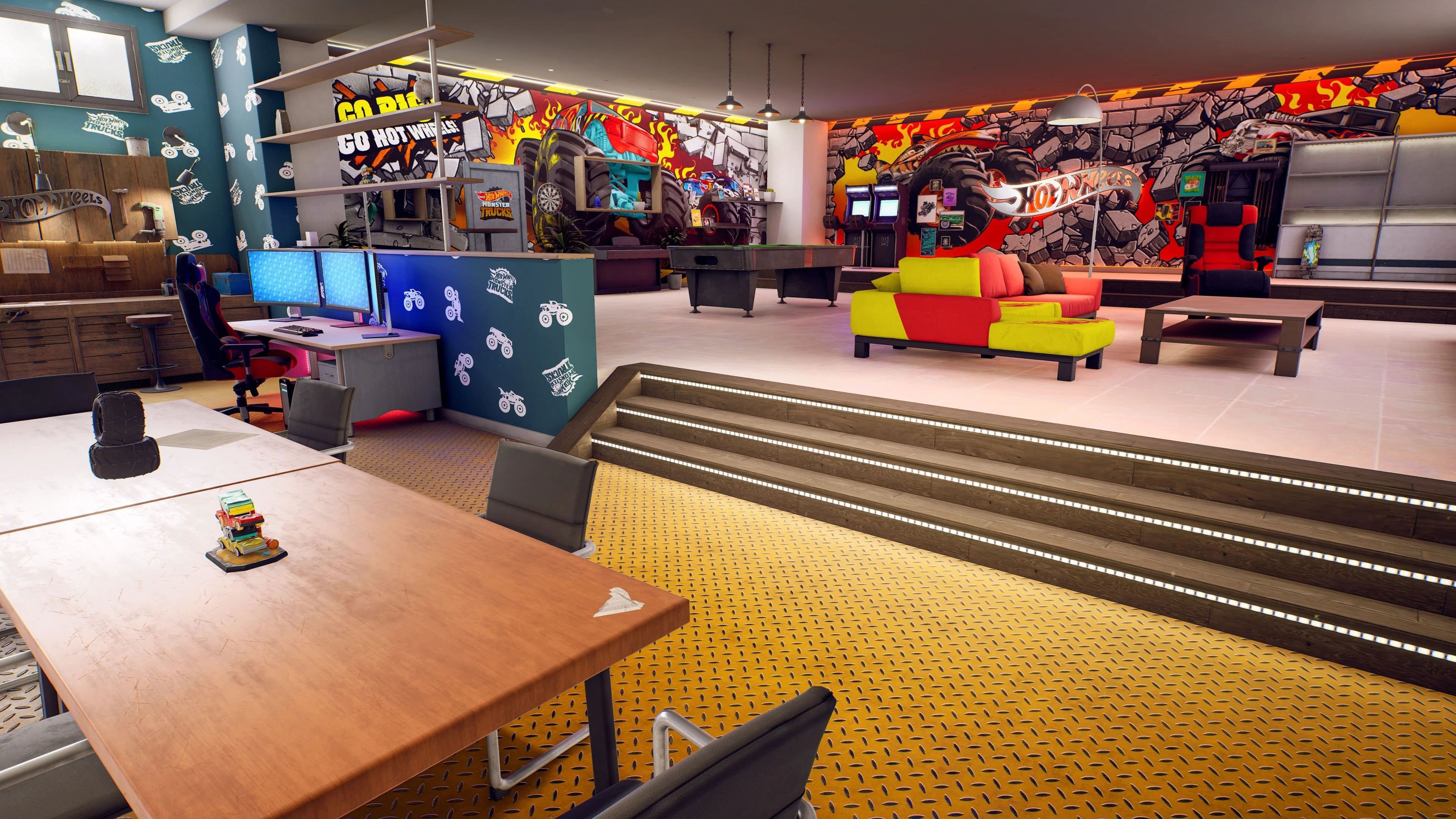 Участвуйте в НЕВЕРОЯТНО ОГРОМНЫХ гонках! В этом дополнении все кажется чрезмерным: колеса, машины, прыжки и... веселье! Насладитесь новыми тематическим окружением, персонализацией и машинами!