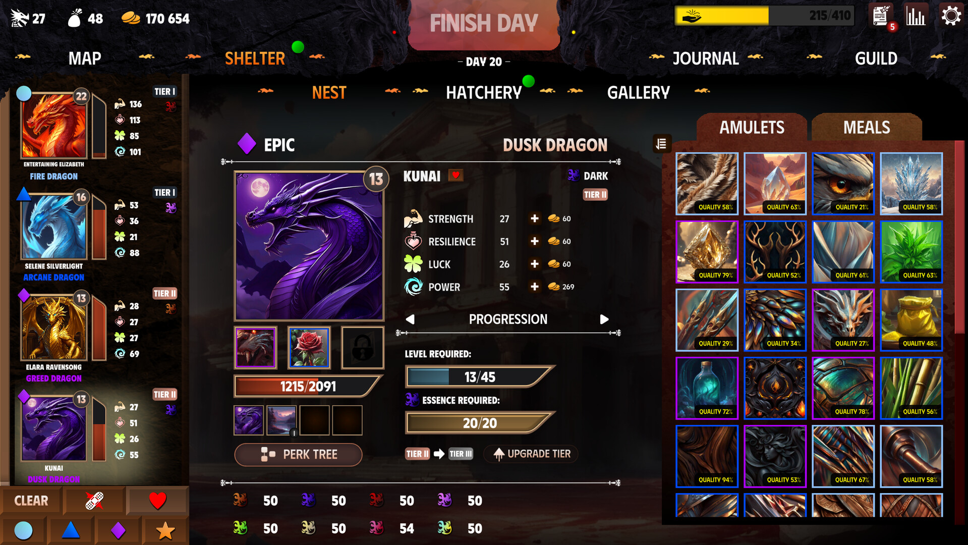 Dragonhood - clicker RPG с рогалик-элементами и автоматическими боями. Собирай яйца, выводи драконов, добывай добычу в 1 против 1 приключениях или 3 против 3 подземельях. Заканчивай задания, создавай драконов любым образом с эволюциями, способностями, амулетами и многое другое!