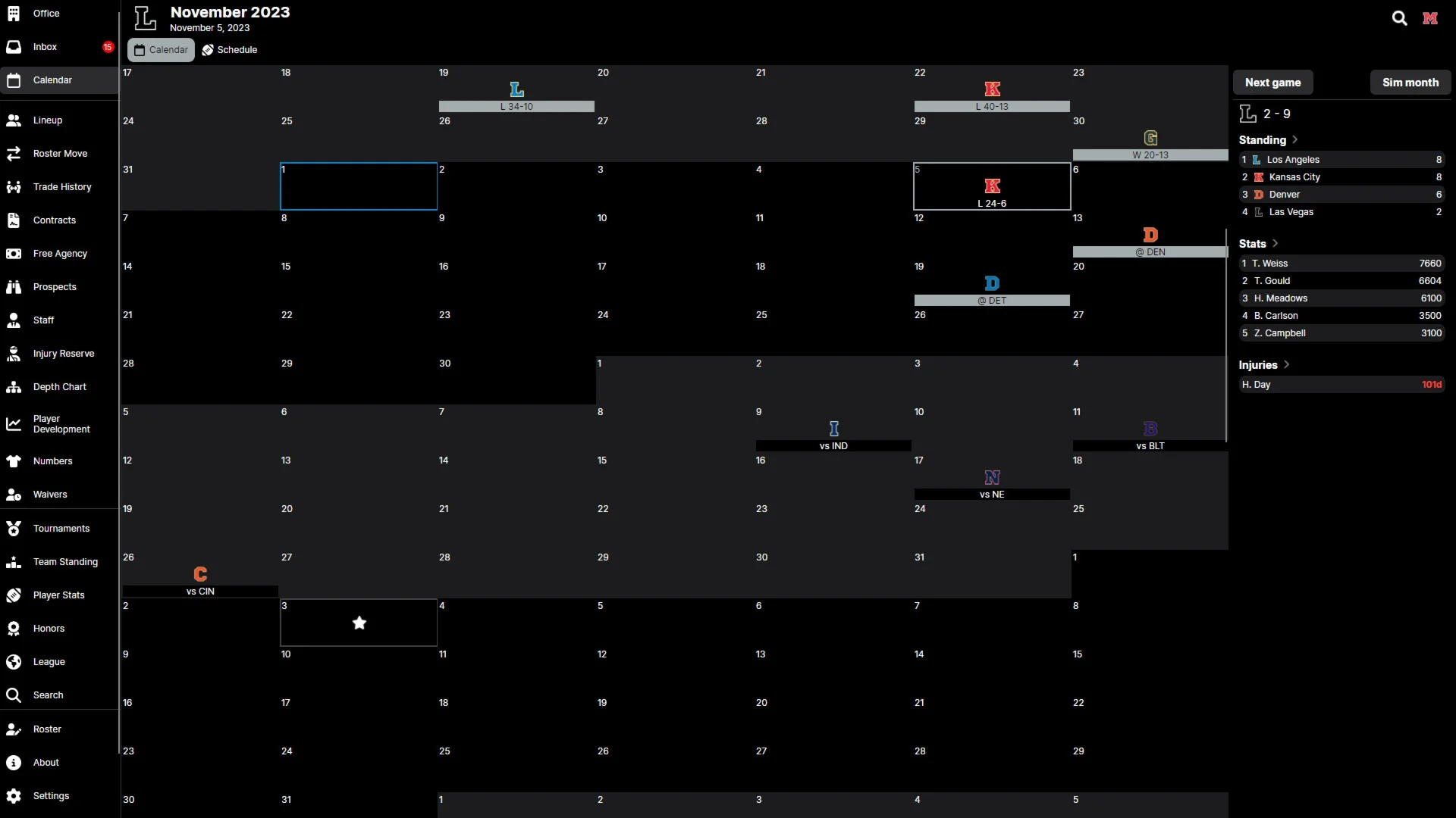 Follow the evolution of the entire league, witnessing teams rise from declining contenders to rising superstars. Track league records, draft classes, player transactions, and more!