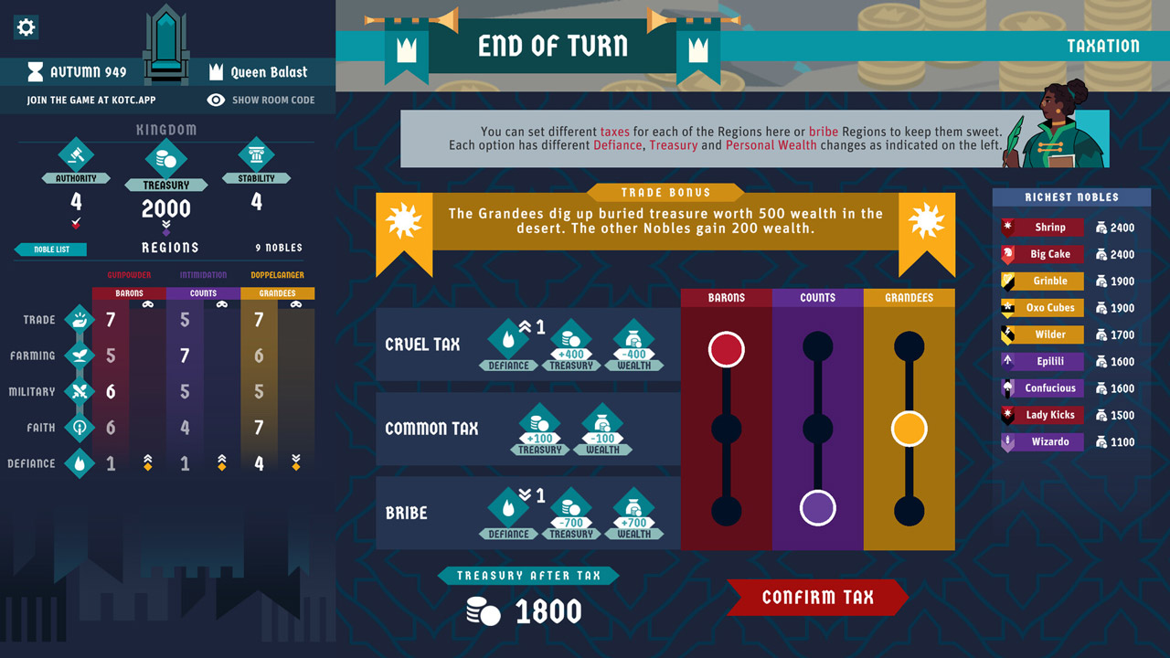 • В роли монарха делайте свой выбор тщательно. Все ваши решения зависят от голосов ваших предательских дворян.