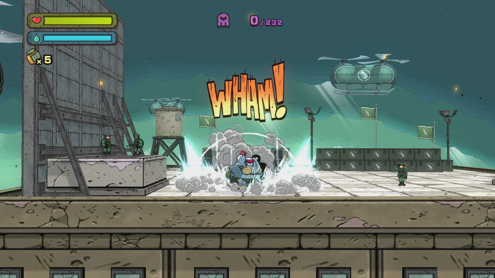 В результате нападения PHANTOM город Shell City оказался в чрезвычайном положении. Пытаясь остановить ужасные военные машины, National Army призывает на помощь единственное существо, способное спасти Shell City от уничтожения, - жевателя орешков и топтателя злодеев, слона TEMBO THE BADASS ELEPHANT!