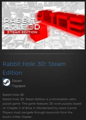 Rabbit Hole 3D: Steam Edition — минималистичная игра-головоломка в стиле ретро. В игре представлены трехмерные словесные головоломки, основанные на первой главе «Алисы в стране чудес» Льюиса Кэрролла. Игроки должны перемещаться по ключевым словам из первой главы книги.