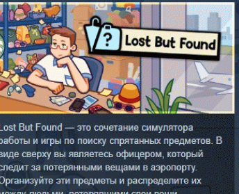 Lost But Found — это сочетание симулятора работы и игры по поиску спрятанных предметов. В виде сверху вы являетесь офицером, который следит за потерянными вещами в аэропорту. Организуйте эти предметы и распределите их между людьми, потерявшими свои вещи.