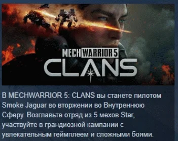 Разные » MechWarrior 5: Clans АВТОДОСТАВКА STEAM РОССИЯ