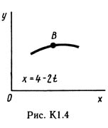 Под номером К1 помещены две задачи К1а и К1б, которые надо решить. Задача К1а. Точка В движется в плоскости xy (рис. К1.0 — К 1.9, табл. К1; траектория точки на рисунках показана условно). Закон движения точки задан уравнениями: x = f1(t), y = f2(t), где x и y выражены в сантиметрах, t — в секундах. Найти уравнение траектории точки; для момента времени t1 = 1 с определить скорость и ускорение точки, а также ее касательное и нормальное ускорения и радиус кривизны в соответствующей точке траектории. Зависимость x = f1(t) указана непосредственно на рисунках, а зависимость y = f2(t) дана в табл. K1 (для рис. 0—2 в столбце 2, для рис. 3—6 в столбце 3, для рис. 7—9 в столбце 4). Как и в задачах С1 — С4, номер рисунка выбирается по предпоследней цифре шифра, а номер условия в табл. К1 — по последней. Задача К1б. Точка движется по дуге окружности радиуса R = 2 м по закону s = f(t), заданному в табл. К1 в столбце 5 (s — в метрах, t — в секундах), где s =AM — расстояние точки от некоторого начала A, измеренное вдоль дуги окружности. Определить скорость и ускорение точки в момент времени t1 = 1 с. Изобразить на рисунке векторы v и a, считая, что точка в этот момент находится в положении M, а положительное направление отсчета s — от А к М.