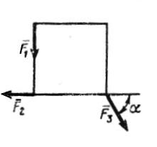 При каком значении угла α равнодействующая системы трех сил будет направлена вертикально, если силы F1 = 3,46Н, F2 = 2Н, F3 = 4Н? (Ответ 60,0)