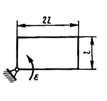 Однородная прямоугольная пластина массой 1 кг вращается с угловым ускорением ϵ = 30 рад/с2 вокруг оси, перпендикулярной плоскости пластины. Определить главный момент сил инерции относительно оси вращения, если размер l =0,1 м. (Ответ -0,5)