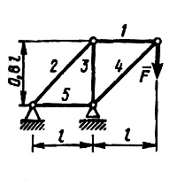 Определить усилие в стержне 3. Сила F = 540H (Ответ -540)