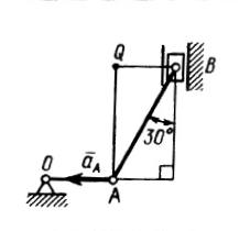 Определить угловое ускорение шатуна АВ, если точка Q является его мгновенным центром ускорений, длина АВ = 0,6 м, ускорение аА = 10 м/с2.