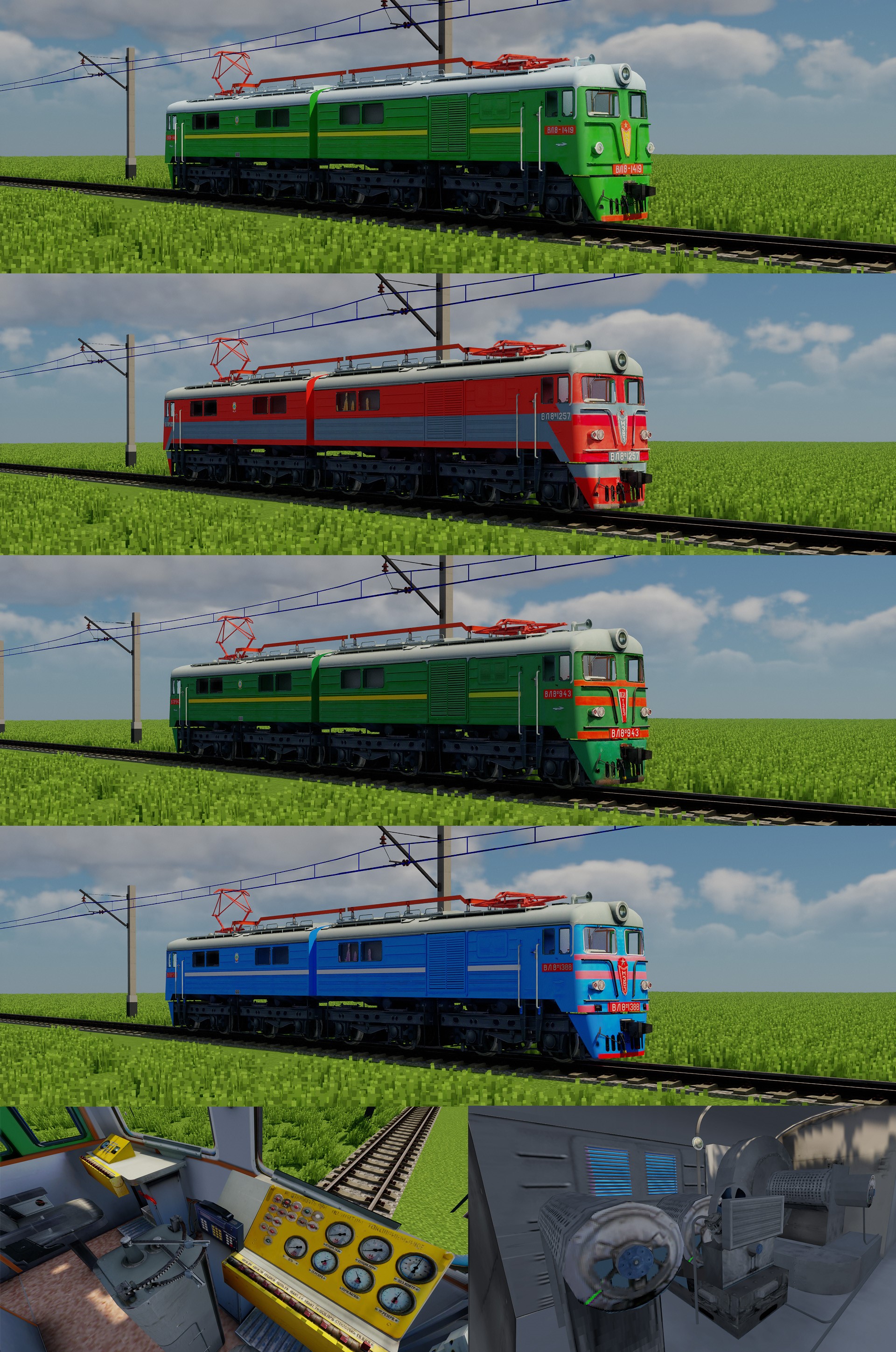 Модель электровоза ВЛ8 для игры Minercraft с предустановленным модом Immersive Railroading.