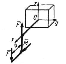 Определить модуль момента Mо реакции пары сил в консольной заделке О, если на систему действуют пара сил с моментом М = 3Н·м и пара сил F = F' = 4Н, a = 1 м и М || Ox, F ||F' || Oz . (Ответ 5)
