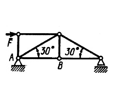 Определить усилие в стержне АВ. Сила F = 346H (Ответ 173)