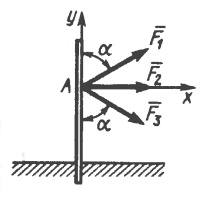 К столбу в точке А приложена плоская система сходящихся сил F1=F2=F3=10Н.