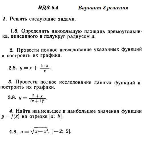 Решения 4-х заданий на производные функций из Рябушко части 1 ИДЗ 6.4 вариант 8