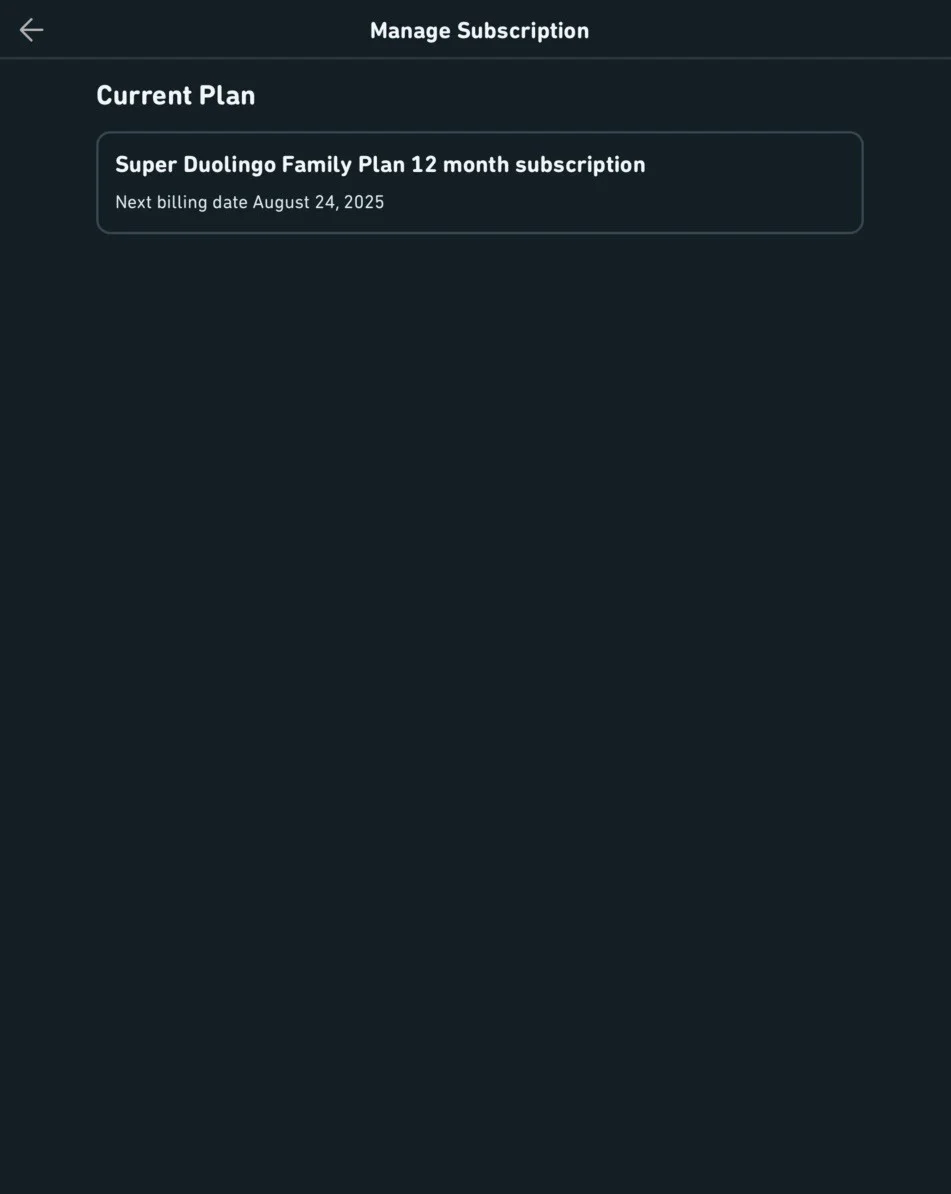 ???? Если вы купили индивидуальную подписку или хотите стать владельцем семейной подписки, вам нужно будет предоставить уникальный код оплаты и данные для входа в аккаунт Duolingo (имя пользователя:пароль).