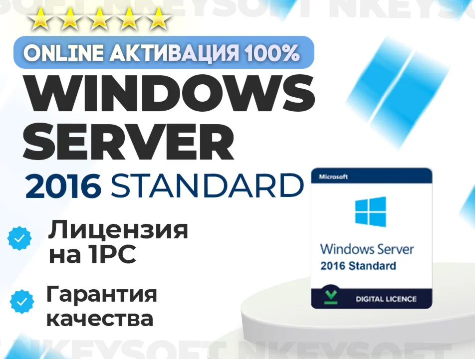 ➡️ После оплаты вы получите ключ формата: XXXXX-XXXXX-XXXXX-XXXXX-XXXXX , которым сможете активировать Windows Server 2016 Standard.