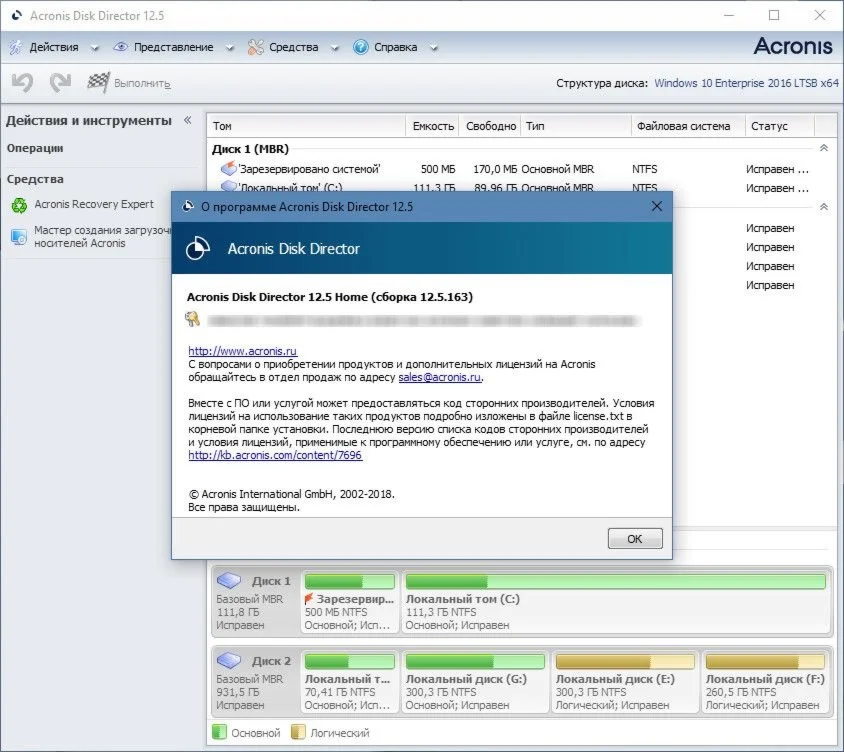 Магазин » Acronis Disk Director 12.5 (Бессрочный, лицензион ключ)