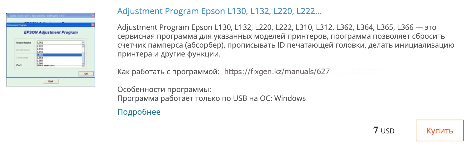 Аджасмент EPSON L130L132 L220L222L310L312L362L365L366