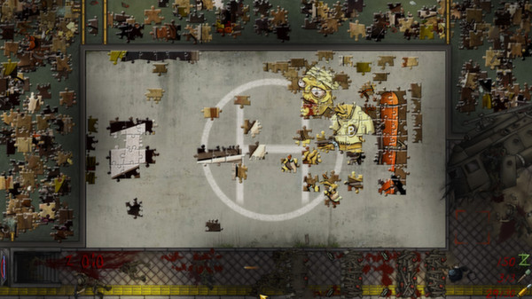 Pixel Puzzles: UndeadZ is a traditional style jigsaw puzzle game with top down shooter gameplay thrown in to ruin your day and peaceful puzzling experience. Dead things want to eat you whilst you puzzle. You'll have to keep the dead dudez at bay with a mixture of mines, barricades, bullets and nades.