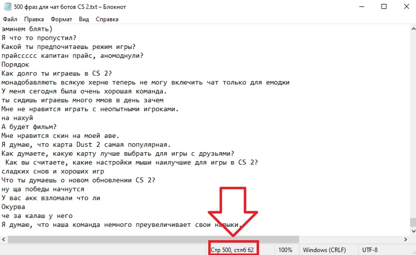 ФАЙЛ ТХТ с фразами по игре CS 2