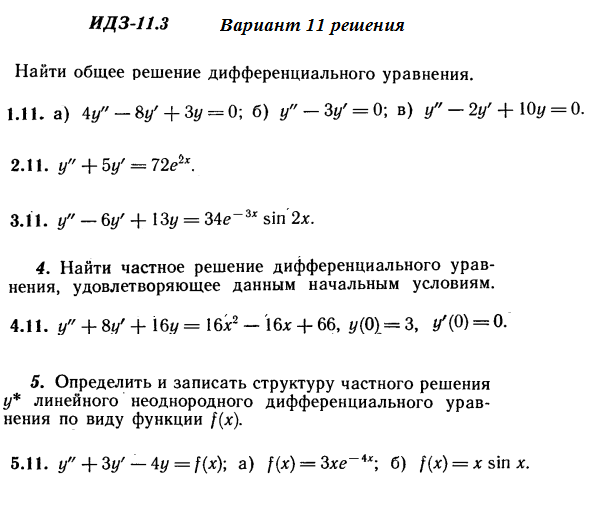 Решения 5-и заданий на дифференциальные уравнения из Рябушко части 2 ИДЗ 11.3 вариант 11