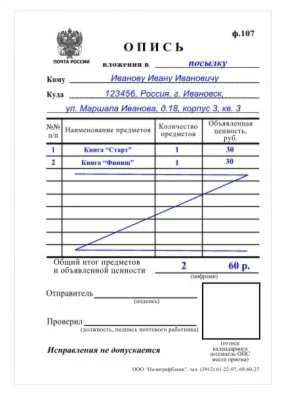 Бланк почты России ф.107 (опись вложения)
