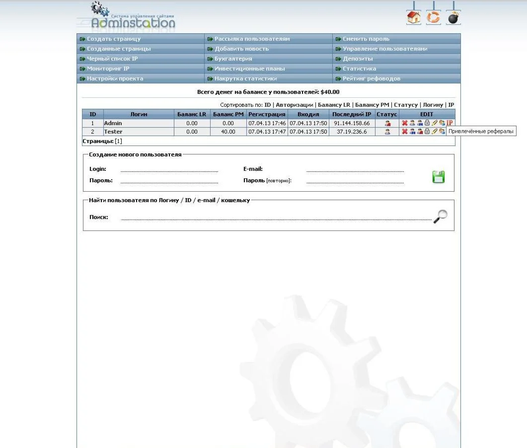 Админка очень удобная и на русском языке, возможность редактировать пользователя, баланс пользователя и так далее.