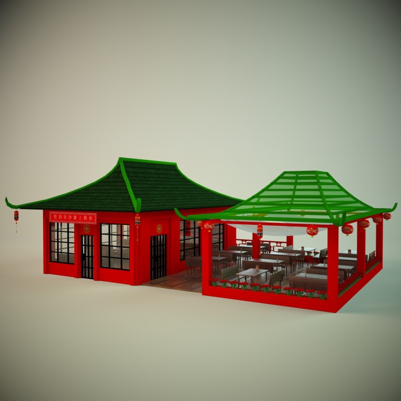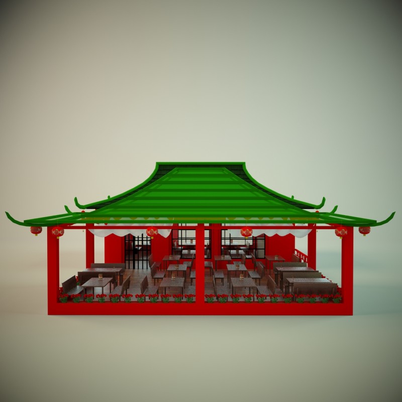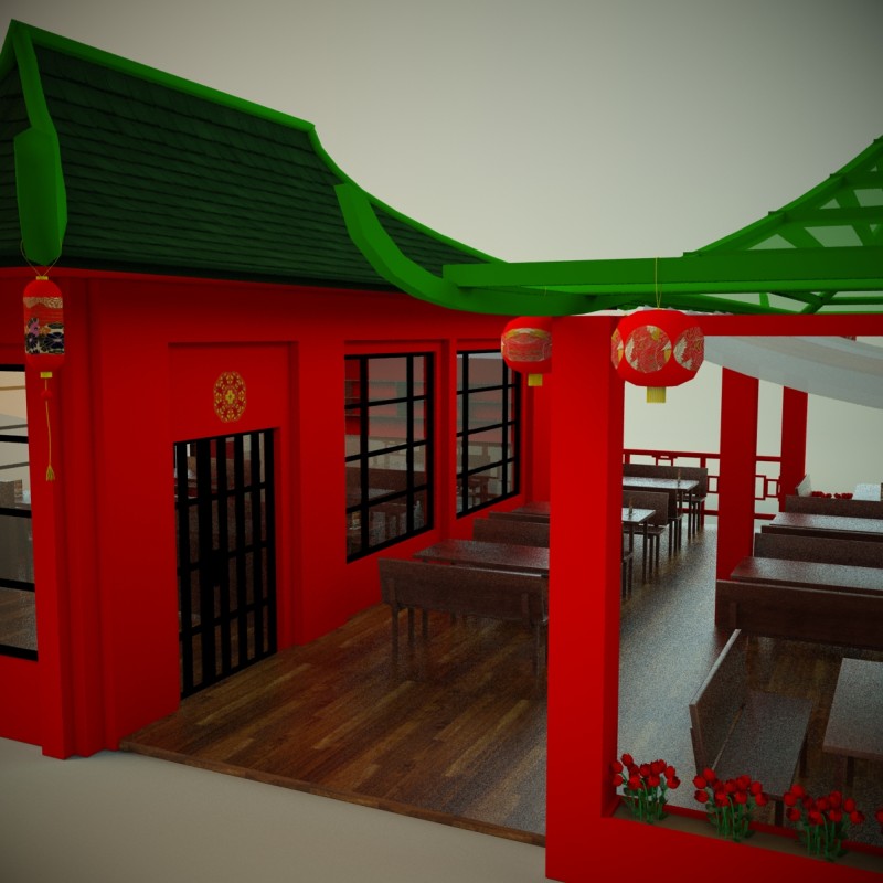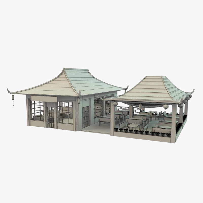 Суши кафе с летней терассой. Все объекты объединены в группу.