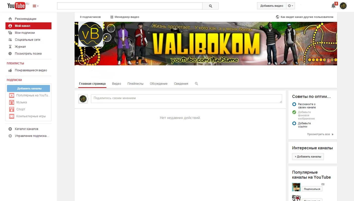 Шапка YouTube "ValiBikom"