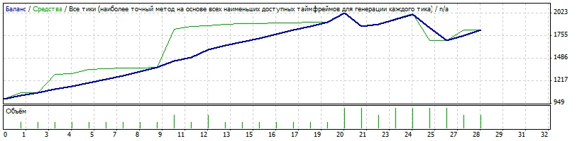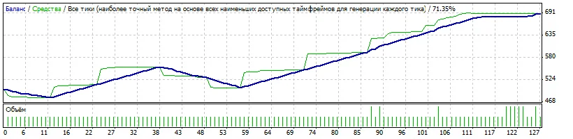 В самом советнике, для определения сигналов вхождения в рынок анализируется два таких индикатора с разными временными периодами. Результатом работы советника стало почти 200% увеличение капитала в течении одного месяца.