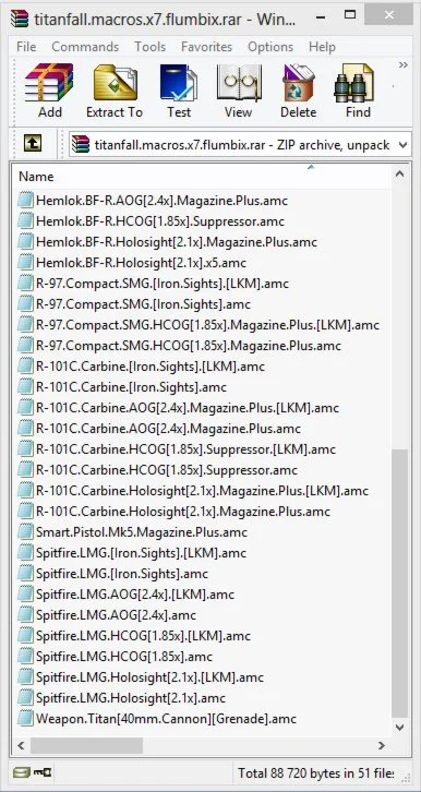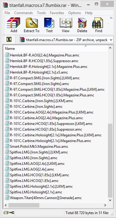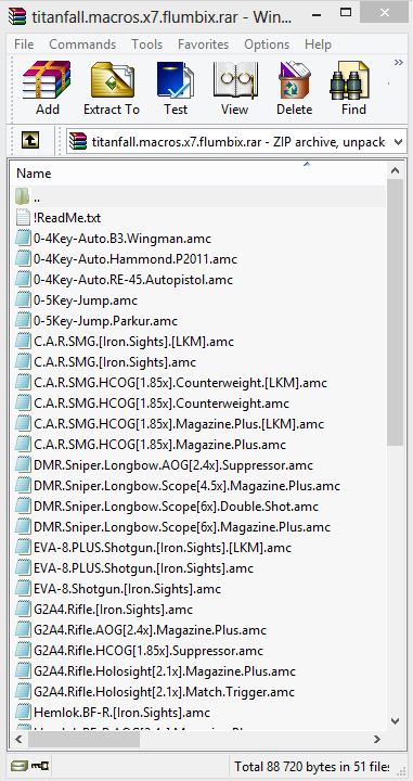 Основные макросы - C.A.R.SMG.[Iron.Sights] | C.A.R.SMG.HCOG[1.85x].Counterweight | C.A.R.SMG.HCOG[1.85x].Magazine.Plus | DMR.Sniper.Longbow.AOG[2.4x].Suppressor | DMR.Sniper.Longbow.Scope[4.5x].Magazine.Plus | DMR.Sniper.Longbow.Scope[6x].Double.Shot | DMR.Sniper.Longbow.Scope[6x].Magazine.Plus | EVA-8.PLUS.Shotgun.[Iron.Sights] | EVA-8.Shotgun.[Iron.Sights] | G2A4.Rifle.[Iron.Sights] | G2A4.Rifle.AOG[2.4x].Magazine.Plus | G2A4.Rifle.HCOG[1.85x].Suppressor | G2A4.Rifle.Holosight[2.1x].Magazine.Plus | G2A4.Rifle.Holosight[2.1x].Match.Trigger | Hemlok.BF-R.[Iron.Sights] | Hemlok.BF-R.AOG[2.4x].Magazine.Plus | Hemlok.BF-R.HCOG[1.85x].Suppressor | Hemlok.BF-R.Holosight[2.1x].Magazine.Plus | Hemlok.BF-R.Holosight[2.1x].x5 | R-97.Compact.SMG.[Iron.Sights] | R-97.Compact.SMG.HCOG[1.85x].Magazine.Plus | R-101C.Carbine.[Iron.Sights] | R-101C.Carbine.AOG[2.4x].Magazine.Plus | R-101C.Carbine.HCOG[1.85x].Suppressor | R-101C.Carbine.Holosight[2.1x].Magazine.Plus | Smart.Pistol.Mk5.Magazine.Plus | Spitfire.LMG.[Iron.Sights] | Spitfire.LMG.AOG[2.4x] | Spitfire.LMG.HCOG[1.85x] | Spitfire.LMG.Holosight[2.1x] | Weapon.Titan[40mm.Cannon][Grenade]