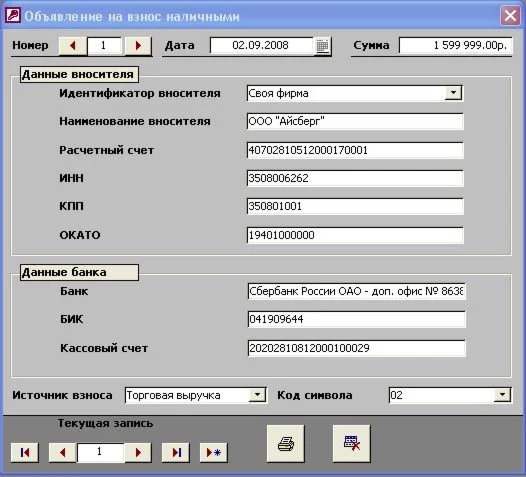Данная программа расчитана на централизованное оформление объявлений на взнос наличными неограниченным количеством фирм. Она имеет неоспоримые преимущества для тех фирм, которые используют несколько расчетных счетов, оформленных на различные юридические лица в разных банках.