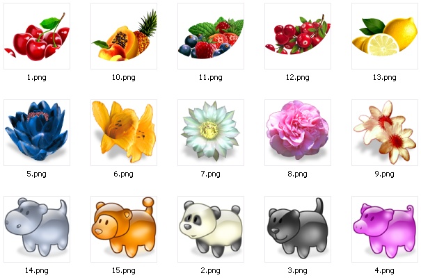 Магазин » Лучшие иконки (3 серии: животные, цветы, ягоды и фрукты