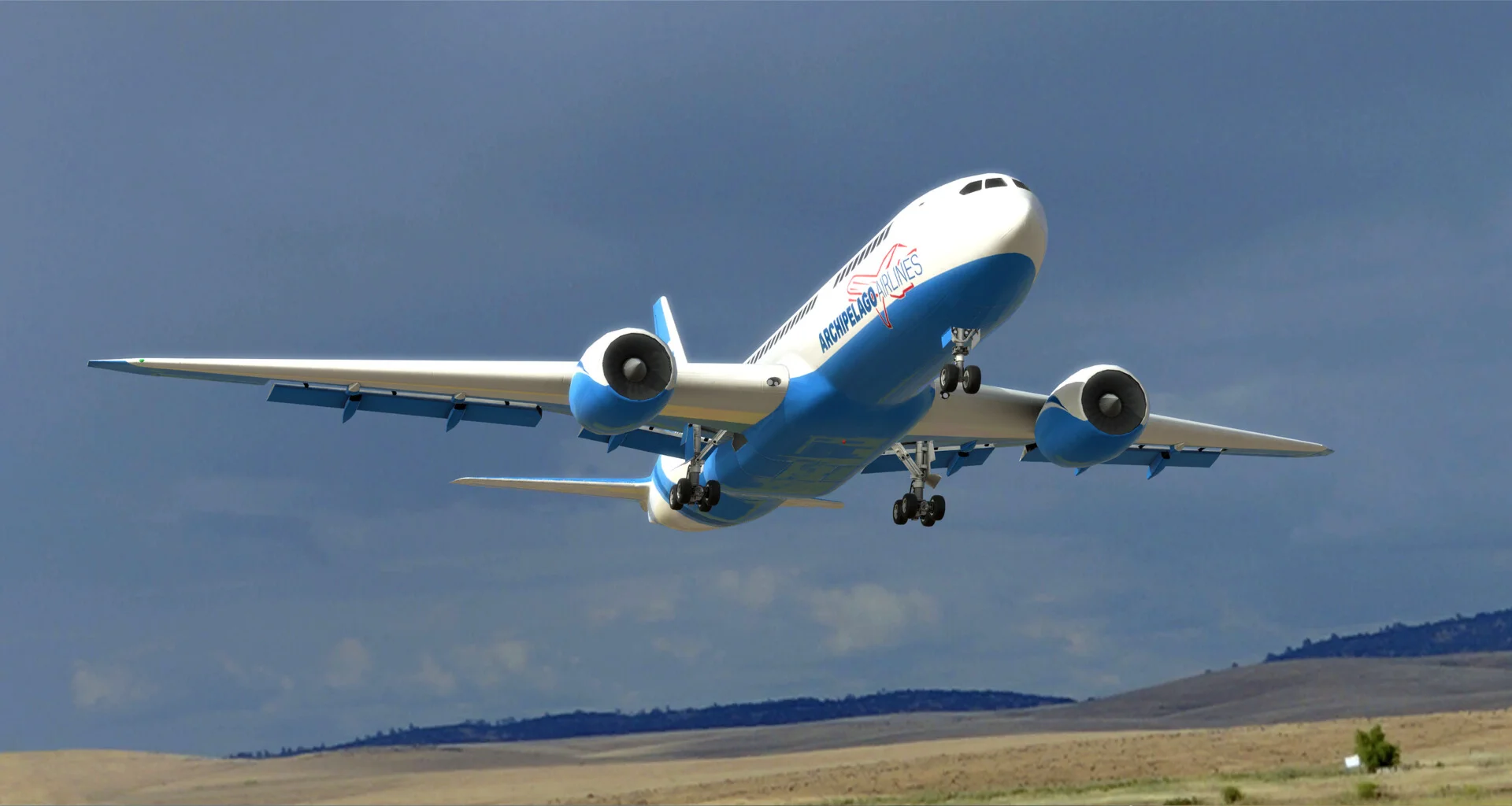 The H676 is a fictitious widebody twin-engine airliner. This model is painted in Archipelago Airlines livery.