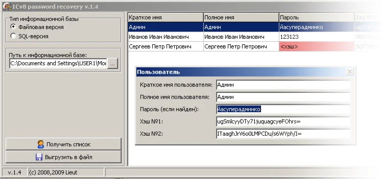 Магазин » 1С Восстановитель паролей v.1.4