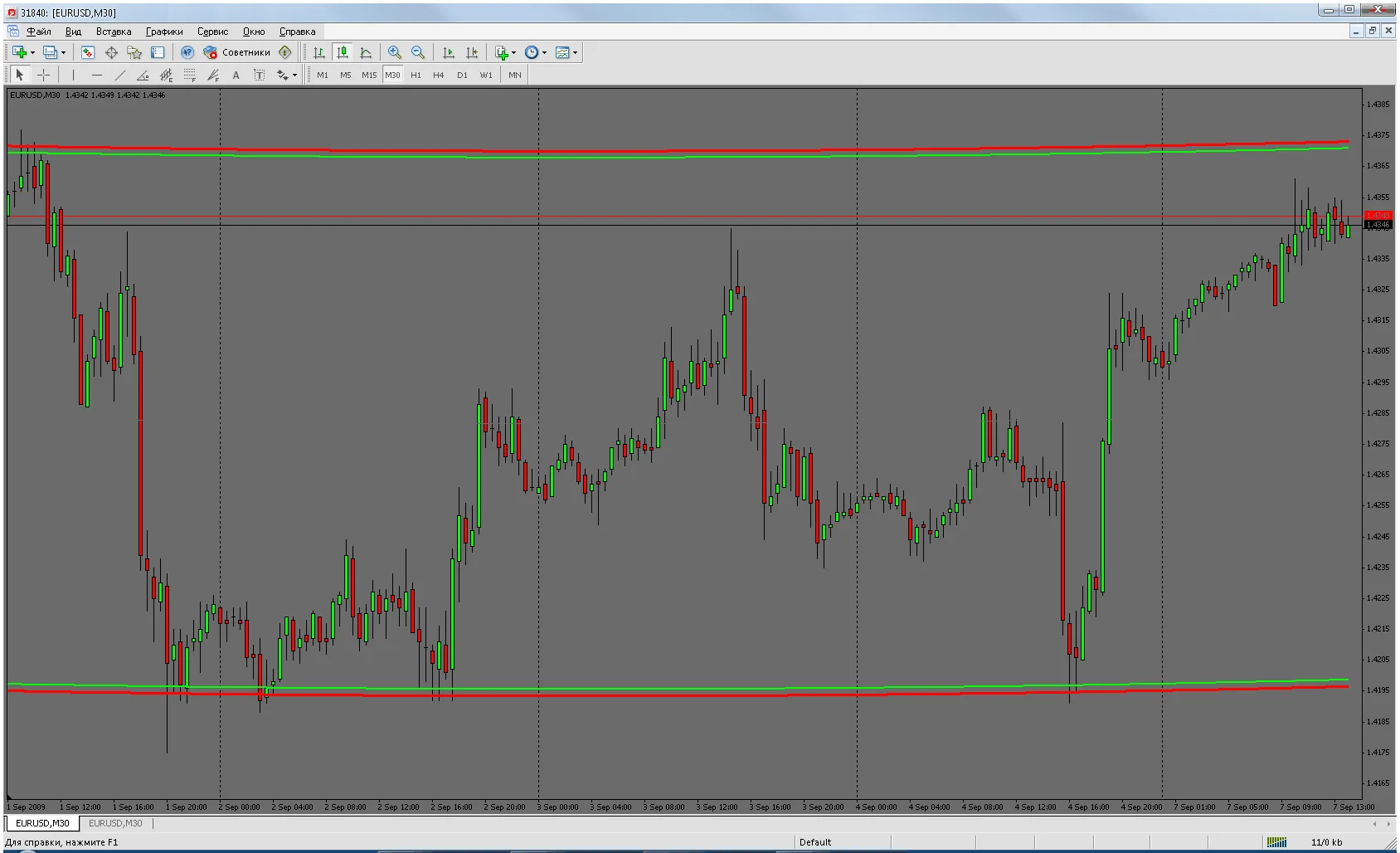 Довольно интересный индикатор, который показывает направление движение цены в канале. Его можно использовать как дополнение к торговой системе уже имеющееся у вас. Хорошие сигналы показывает на ТФ М30, но также рекомендую допускать погрешность отступая от канала где-то 5-7%