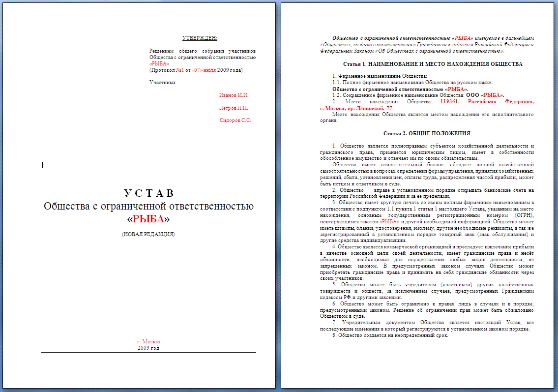 Магазин » Образец нового Устава ООО согласно нового закона 312-ФЗ
