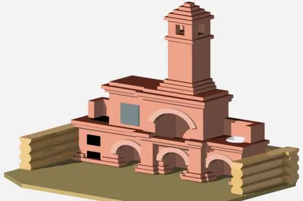 Королевский внешний виз впечатляет. Имеет большой мангал «камин», коптилку «духовой ящик», варочная плита , «казан», 3 симметричные ниши под дрова. Мойку. Ваши гости будут в восторге.