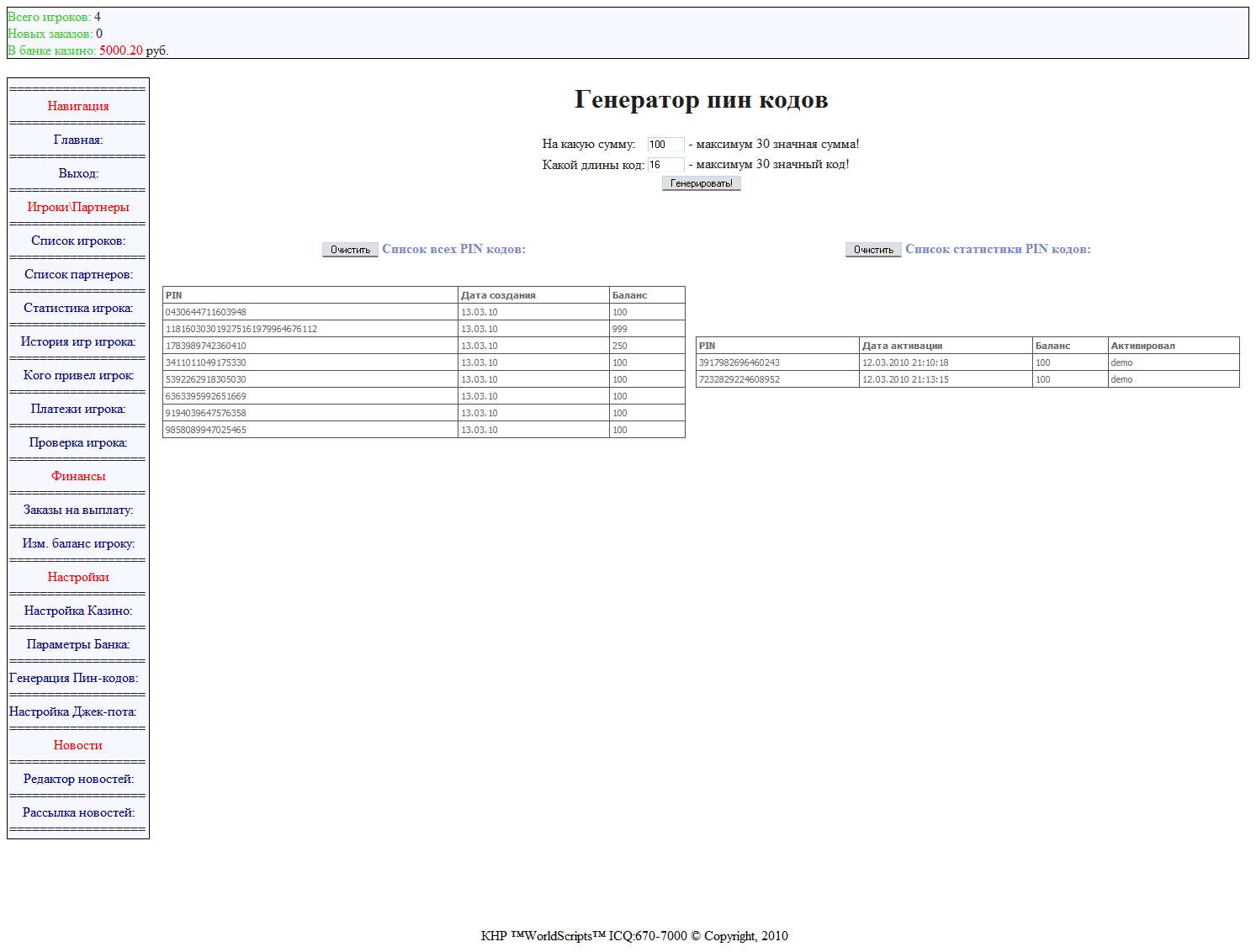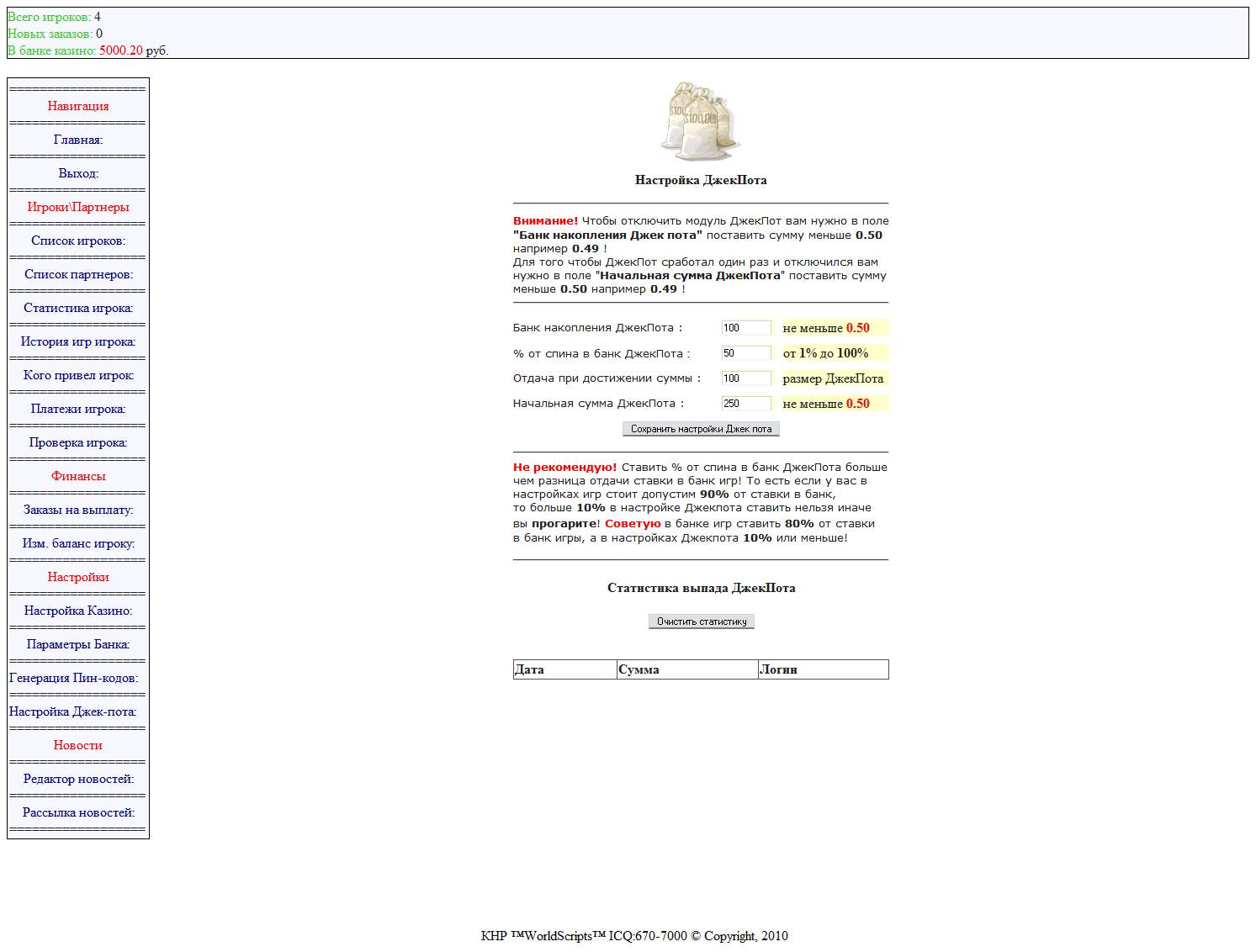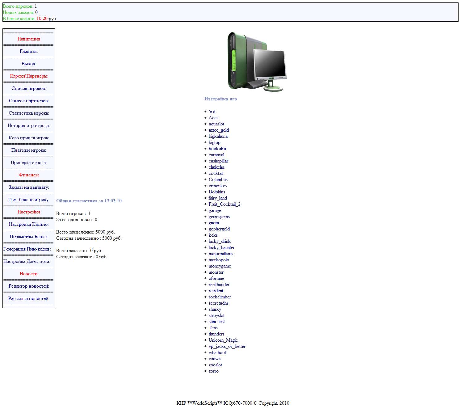 6)Самое главное простота в установке,просто залейте скрипт на хостинг и пропишите в 2х файлах ваши базы и все казино готово к работе.