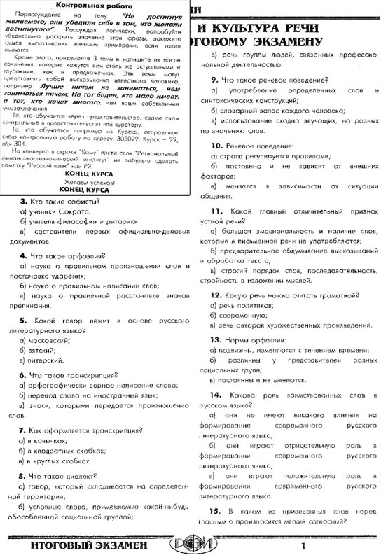 Магазин » РФЭИ "РУССКИЙ ЯЗЫК И КУЛЬТУРА РЕЧИ" КОНТРОЛЬНАЯ РАБОТА