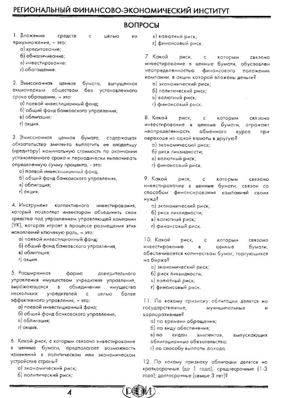 ИТОГОВЫЙ ЭКЗАМЕН "ИНВЕСТИЦИИ" Региональный финансово - экономический институт.