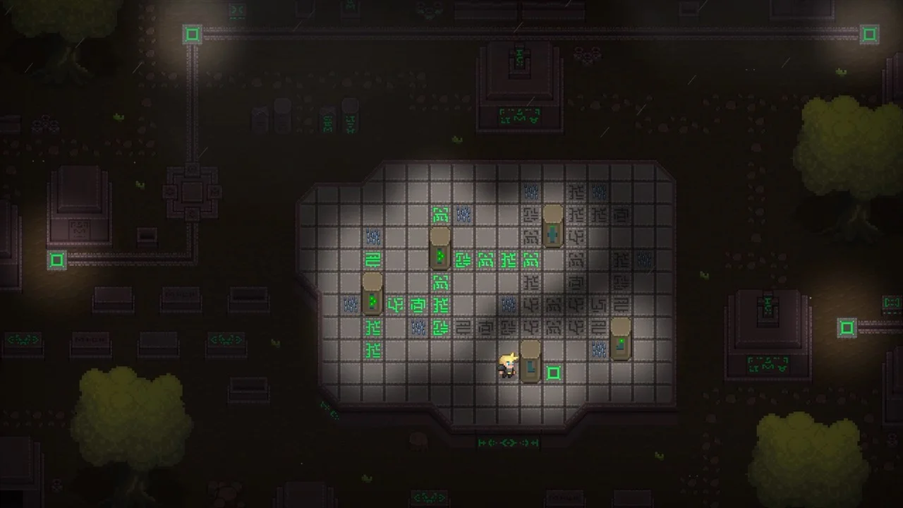 Исследуйте загадочные руины и раскройте их секреты, изучив светящиеся символы!
