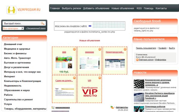 2. Разнообразие вывода объявлений в зависимости от места вывода (главная страница, в категориях, в подкатегориях и т.п.), что повлияло не только на визуальное восприятие, но и на индексацию поисковыми роботами.