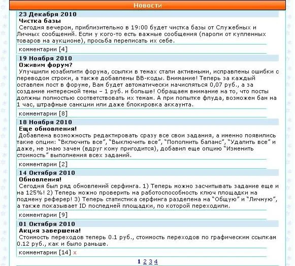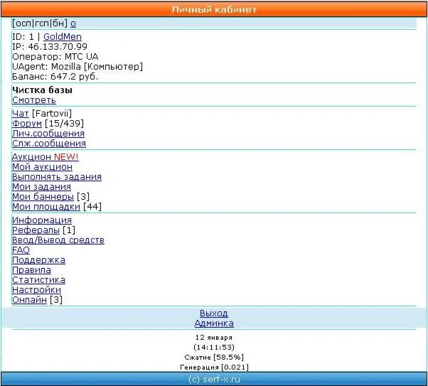 • Все важные события, которые происходят на серфинге (когда продан лот, когда модер забанил на 1 час флудера на форуме и т.д.) система извещает админа в служебном сообщении.